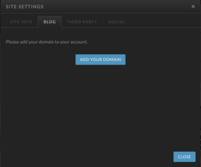 To request a blog setup and to connect your domain, click on "Site Settings" in the upper left-hand corner of your screen. Select the "Blog" tab in the pop-up, then click "Add Your Domain" and follow the on-screen instructions.