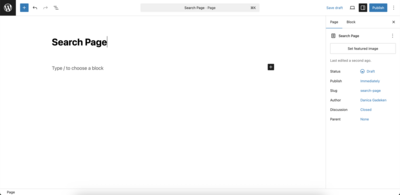 The Natalie McKinney template features a dedicated search page. In order for the page to show properly on your site once live, it needs to be connected to WordPress. To do so, log in to your WordPress account and click on "Pages," then "Add Page." Title the new page exactly "Search Page" and click the blue publish button in the upper right-hand corner. That's it, your Search Page is now connected!
