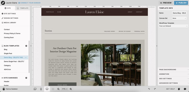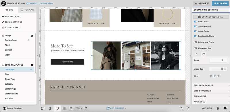 Showit integrates with WordPress to give you the robust capabilities of WordPress with the design customization of Showit.