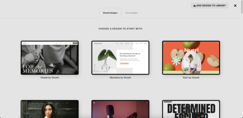 If this is your first time using your Showit account, you will be taken to the page shown above. Click the "Add Design To Library" button.